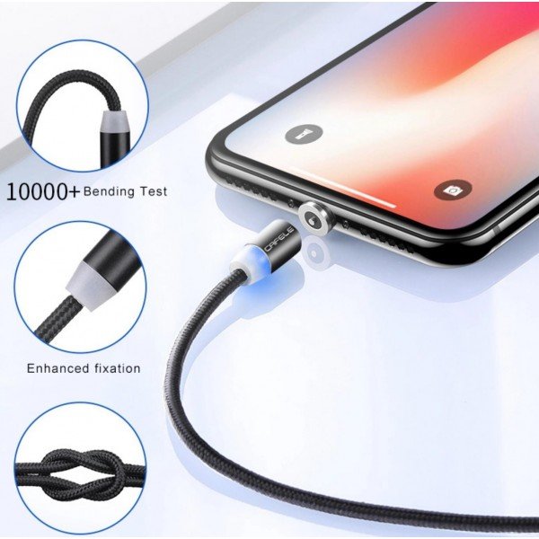 Câble d’un mètre avec un embout magnétique Type-C et micro-usb. Ne cassez plus les fiches USB de vos appareils. Il permet un rechargement pratique et rapide via un ordinateur ou un adaptateur secteur USB.