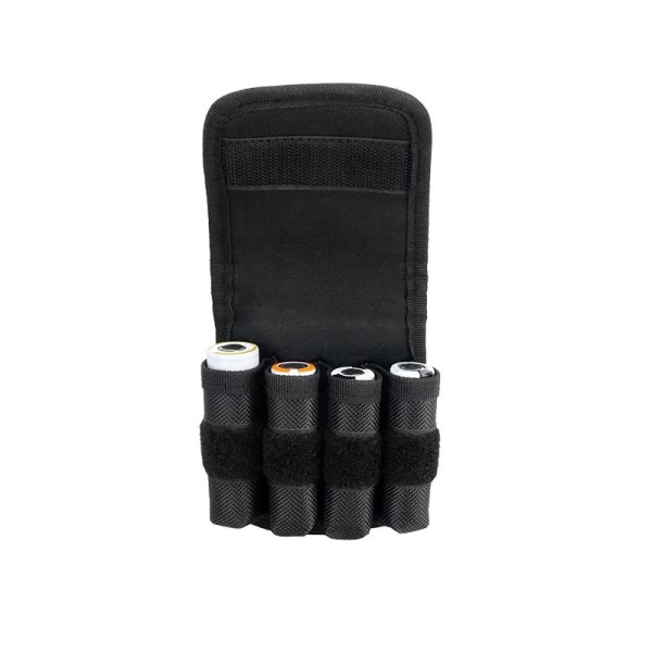 - Qu’est-ce qui rend cette pochette de transport pour 4 accus par Fumytech si spécial ? Sa conception ingénieuse permet de ranger jusqu’à 4 batteries simultanément, ainsi que d’autres petits objets indispensables comme des résistances, du coton ou des outils.